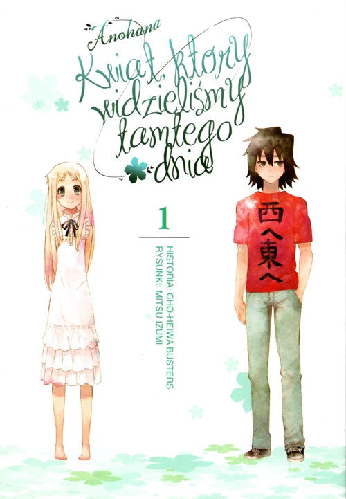 Anohana - kwiat, który widzieliśmy tamtego dnia. 1 / historia: Cho-Heiwa Busters ; rysunki: Mitsu Izumi ; [tłumaczenie Amelia Lipko]. - Wydanie 1. - Warszawa : Wydawnictwo Waneko, kwiecień 2020. - 191, [25] stron, [1] karta tablic złożona : ilustracje ; 20 cm.