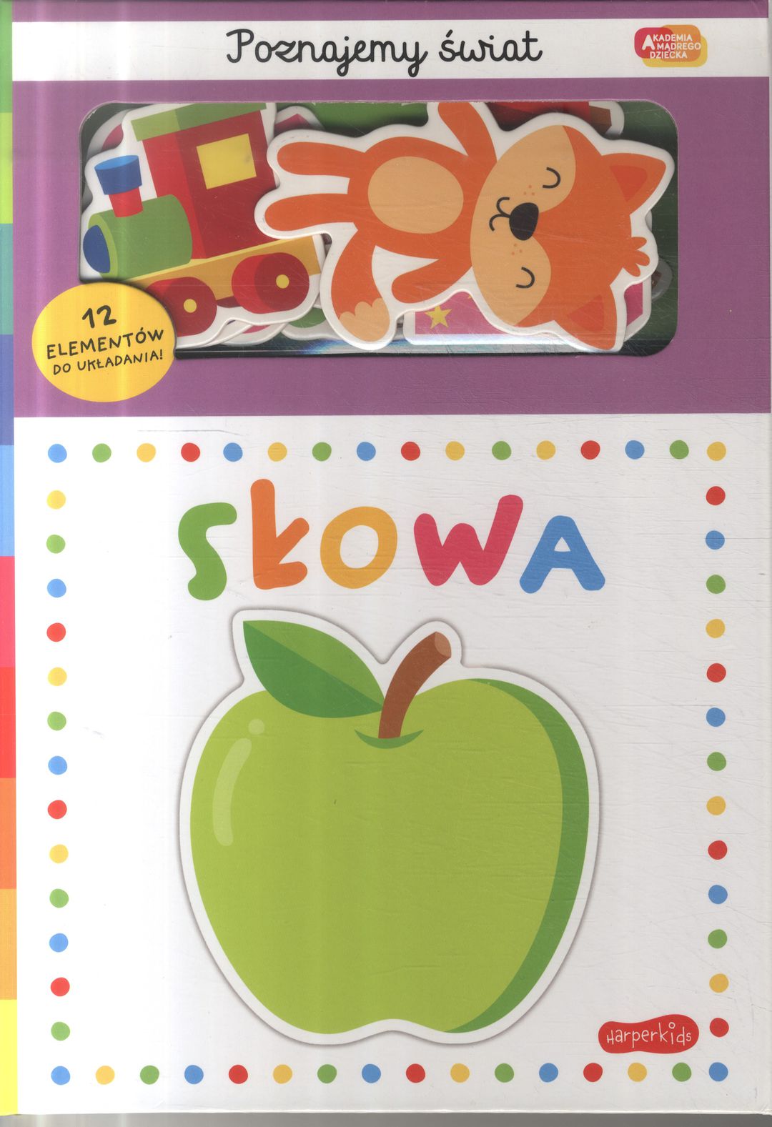 Słowa / [ilustracje: Gareth Williams ; tekst: Rhea Gaughan, Natalie Munday ; tłumaczenie: Katarzyna Grzyb]. - Warszawa : HarperKids, copyright 2024. - [10] stron : ilustracje ; 27 cm + 12 elementów do układania.