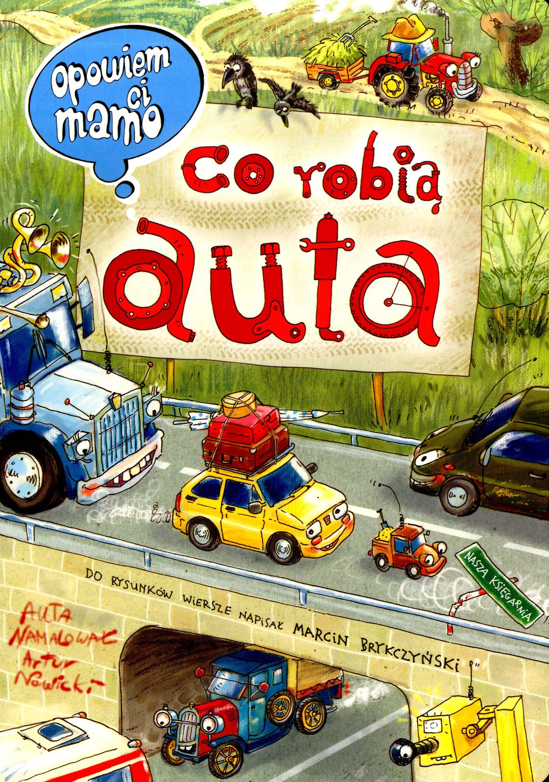 Jakie samochody pracują w mieście, a jakie na wsi? Co kryje w sobie wnętrze samochodu? Jakie pojazdy ścigają się po torze wyścigowym, a jakie pracują na placu budowy? Dlaczego w warsztacie samochodowym jest taki bałagan? Co robią samochody zimą, a co w lecie? Gdzie można spotkać najnowsze i najpiękniejsze modele samochodów? Odpowiedzi na te i inne pytania dotyczące bogatego świata pojazdów dużych i małych znalazły się w tej niezwykłej książce narysowanej z humorem przez Artura Nowickiego.