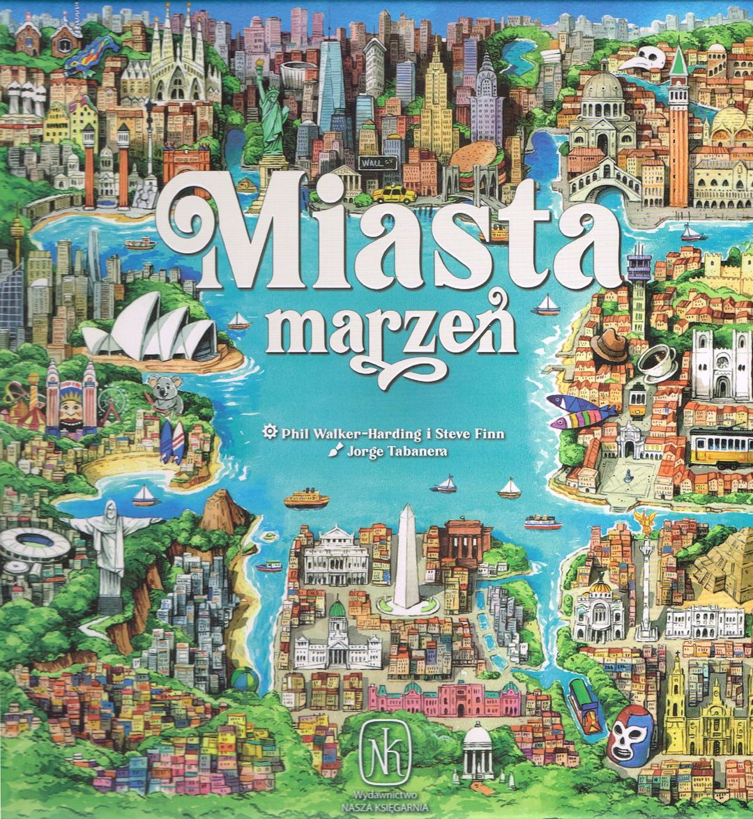 Miasta marzeń (gra planszowa) / Phil Walker-Harding, Steve Finn ; ilustracje Jorge Tabanera. - Warszawa : Nasza Księgarnia, copyright 2024. - 1 pudełko ; 23x23x7 cm + instrukcja (8 stron : ilustracje ; 20 cm).