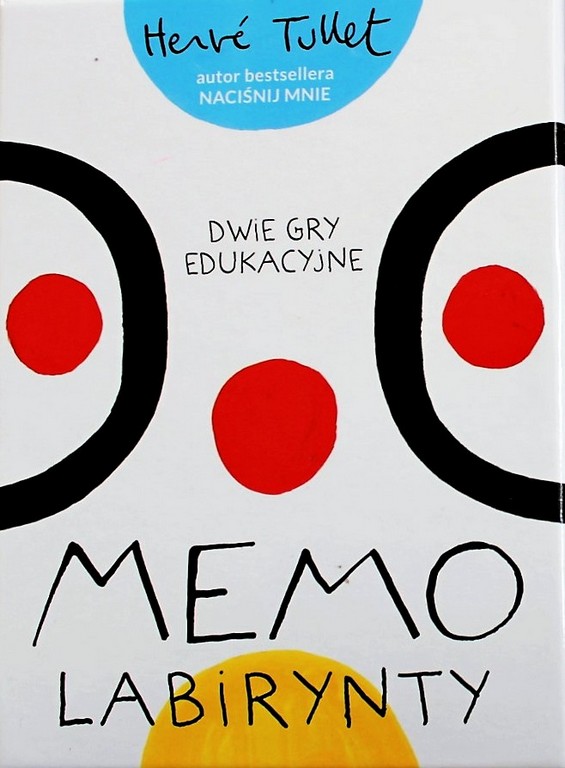 MEMO LABIRYNTY Herve Tulleta - autora światowego bestsellera NACIŚNIJ MNIE - to połączenie rozbudzającej wyobraźnię zabawy z edukacją: nauką kolorów, kształtów i kierunków. To także nauka logicznego myślenia, wnioskowania i zapamiętywania oraz zachęta do kreatywnego tworzenia własnych abstrakcyjnych wzorów i labiryntów. 2 w 1, czyli kolorowe MEMO oraz biało-czarne LABIRYNTY! To dwie gry logiczne pobudzające wyobraźnię, kreatywność oraz pamięć i koncentrację! MEMO – zapamiętuj kolory i figury, żeby zbierać takie same karty w pary. LABIRYNTY – buduj własne labirynty, zakręcone drogi, niezwykłe wzory.