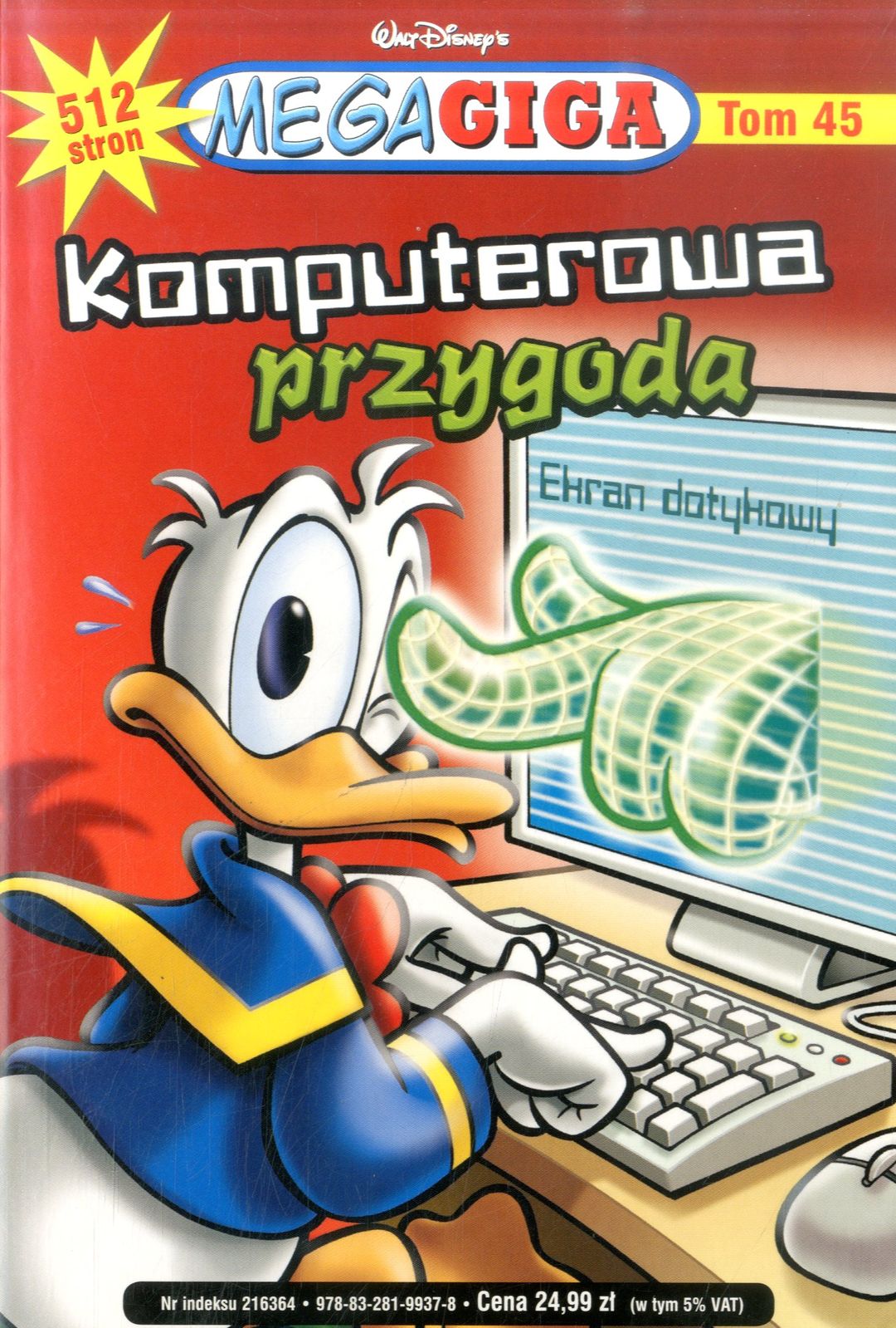"Konie trojańskie i wirusy! Wirtualne walki! Komputerowe zjawy! Czeka na ciebie ponad 500 stron prześmiesznych przygód Donalda i spółki w świecie komputerów!"