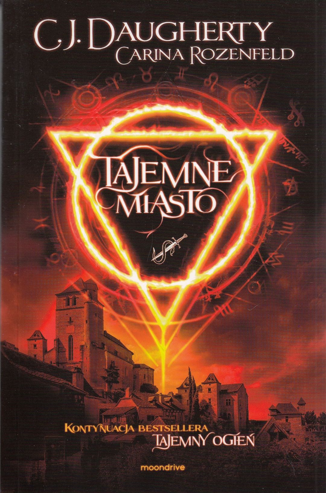 "Bezpośrednia kontynuacja powieści „Tajemny ogień”. Jej bohaterowie ukrywają się wśród oksfordzkim Kolegium Świętego Wilfreda, próbując znaleźć sposób na przełamanie pradawnej klątwy, która zacznie działać w dniu ukończenia przez nich osiemnastego roku życia. Mają więc jedynie tydzień, by ją powstrzymać."