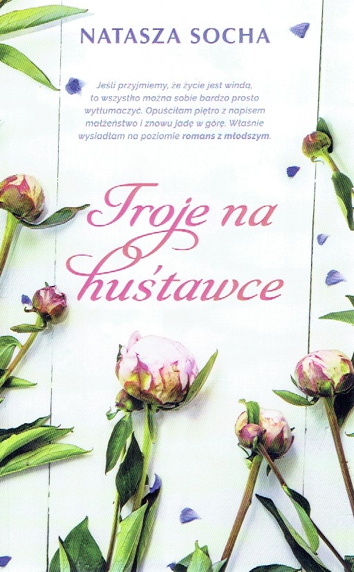 "Koralia ma czterdzieści dwa lata i czterdzieści dwa powody, by zmienić swoje życie. Oraz jeden dodatkowy, który wywraca jej świat do góry nogami. Tytus jest osiemnaście lat młodszy. Kiedy ona zdawała maturę, on własnie się rodził. I jeszcze jedno - jest synem jej najlepszej przyjaciółki. Co w życiu jest ważniejsze? Przyjaźń czy miłość? Czy naprawdę trzeba wybierać? „Troje na huśtawce” to współczesny romans obyczajowy, spisany w formie pamiętnika, opowiedziany z dystansem, ironią i dużą dawką emocji. Jeśli przyjmiemy, że życie jest windą, która zatrzymuje się na każdym piętrze, a potem jedzie dalej, to wszystko można sobie bardzo prosto wytłumaczyć. Piętro z napisem małżeństwo zostało przeze mnie opuszczone, a ja znowu przesuwam się w górę. Obecnie wysiadłam na poziomie „romans z młodszym..."