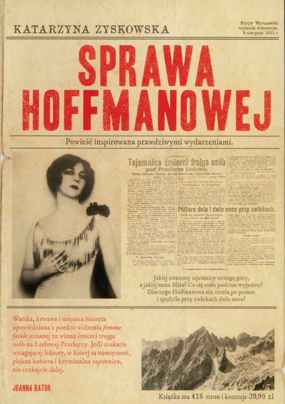 "Góry strzegą tajemnic lepiej niż ludzie. „Co stało się pod Lodową Przełęczą?” „Tajemnicza śmierć trzech osób!” „Dwie noce przy zwłokach” - takimi nagłówkami wita zakopiańskich turystów sierpniowy poranek 1933 roku. Kilka dni wcześniej w góry wyrusza prokurator Hoffman z dwunastoletnim synem i żoną - byłą gwiazdą warszawskich kabaretów, budzącą pożądanie i zazdrość przepiękną Mirą. Do Zakopanego wraca tylko ona, a na Lodowej Przełęczy ratownicy znajdują ciała jej męża, pasierba i młodego mężczyzny. Opinia publiczna nie ma wątpliwości - Hoffmanowa jest winna. Ona sama jest w szoku, niczego nie pamięta, nie potrafi się bronić. Jaką straszną tajemnicę kryją góry, a jaką sama Mira? Co się stało podczas wyprawy? Dlaczego Hoffmanowa nie zeszła po pomoc i spędziła przy zwłokach dwie noce? Przedwojenne Zakopane, tajemnica z przeszłości i historia wstrząsająca bardziej niż słynna sprawa Gorgonowej. Powieść inspirowana prawdziwymi wydarzeniami."