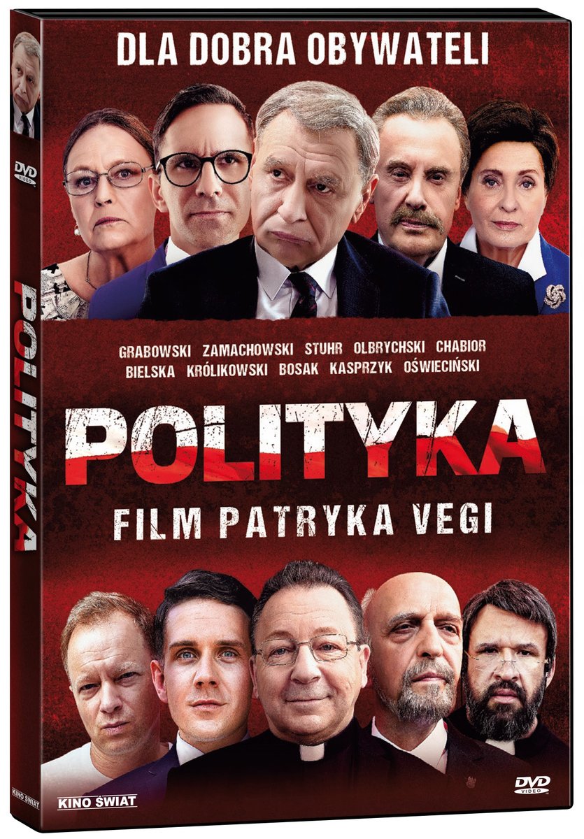 Film "Są filmy, które wstrząsają widzami, stając się wydarzeniami daleko wykraczającymi poza świat kina i bezpowrotnie zmieniającymi rzeczywistość… „Polityka” Patryka Vegi z pewnością jest jednym z nich. Utrzymywane na etapie produkcji w całkowitej tajemnicy, najnowsze dzieło króla box office to film, który z właściwą reżyserowi ostrością portretuje środowisko wzbudzające w kraju powszechne i skrajne emocje. Co robią i jak zachowują się najważniejsi ludzie w kraju, kiedy gasną światła kamer i spadają maski? Jak władza i dostęp do publicznych pieniędzy wpływają na osoby piastujące najwyższe urzędy i pełniące obowiązki wobec Narodu? Bezkompromisowa „Polityka” odpowiada na te pytania. To film o przedstawicielach wszystkich frakcji i ugrupowań politycznych w Polsce, o rządzących i opozycji, o świeckich liderach i politykach w sutannach. Obraz, który bez taryfy ulgowej odkrywa przed widzem kulisy największych afer, przekrętów i skandali oraz pokazuje polityków, jakimi są naprawdę. Ujawnia skrywane oblicza i zachowania, o których wiedzą tylko nieliczni."