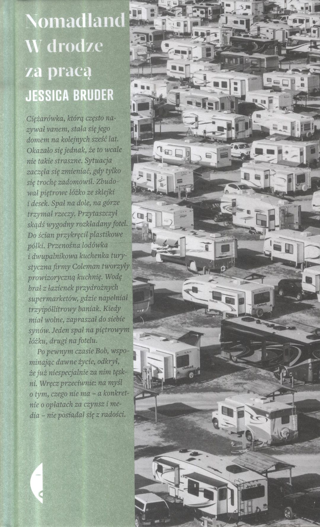 "Ich oszczędności wyparowały po kryzysie w 2008 roku lub z powodu różnych życiowych wypadków. Zamiast przejść na zasłużoną emeryturę, żegnają się z wygodnym życiem przedstawicieli klasy średniej, które wiedli dotąd. Sprzedają domy, bo nie mogą ich już utrzymać, przesiadają się do kamperów, przyczep, vanów czy pikapów i ruszają w drogę. Jeżdżą od stanu do stanu w poszukiwaniu dorywczej pracy - na kempingach, przy zbiorach owoców i warzyw, w centrach logistycznych Amazona. Dla wielu firm to pracownicy doskonali. Są wytrwali, odpowiedzialni, doświadczeni, bardzo zdeterminowani. Przywożą ze sobą cały swój dobytek, zmieniając postoje przyczep w efemeryczne miasteczka robotnicze, które pustoszeją, kiedy kończy się praca. Nigdzie nie zostają wystarczająco długo..."
