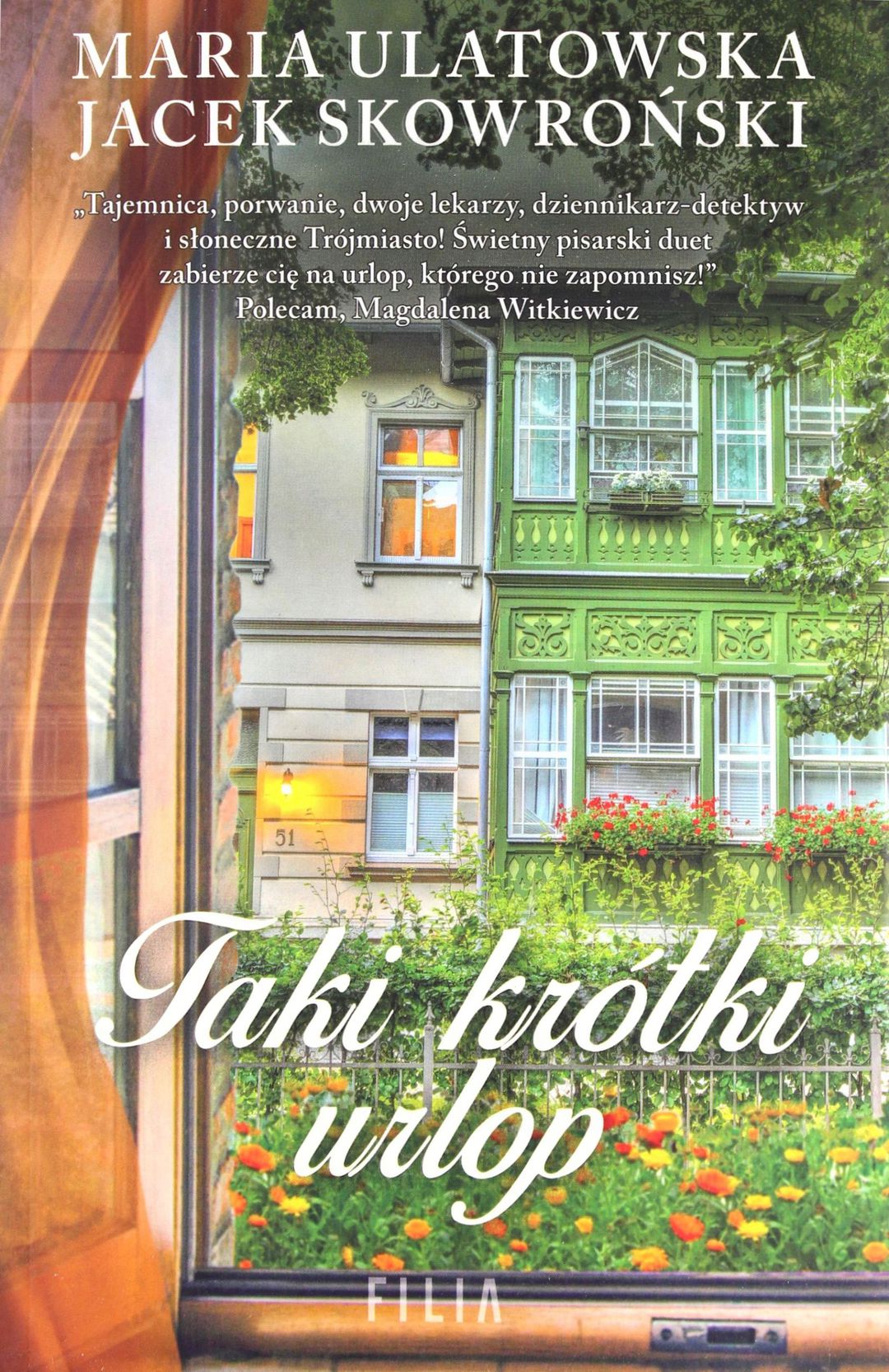 "Nowa wspólna powieść najpopularniejszego polskiego duetu pisarskiego! Tym razem zapraszają do Trójmiasta, gdzie ich bohaterowie wplątali się, oczywiście całkiem przypadkowo, w świat gangsterskich rozgrywek. Aleksandra i Joachim, kardiolodzy z Warszawy, przyjeżdżają do Sopotu na spontaniczny, niedługi urlop. Jednak już pierwszego dnia ich pobytu wydarza się coś, co zamienia ich miły, wymarzony wypoczynek, w dramat, by nie powiedzieć – w horror. Najpierw zupełnie przypadkowo widzą morderstwo, a gdy chcą złapać trochę snu, żeby zastanowić się na trzeźwo i spokojnie nad tym, co widzieli, ktoś wdziera się do ich pokoju i porywa Olkę. Joachimowi udaje się odbić dziewczynę i obydwoje uciekają furgonetką porywaczy. Niestety fatalny ciąg zdarzeń sprawia, że zostają uznani za płatnych zabójców. Muszą jak najszybciej wybrnąć z tarapatów, w jakie się wplątali. Nie mogą pozwolić, by ich krótki urlop stał się także ich ostatnim. "Tajemnica, porwanie, dwoje lekarzy, dziennikarz-detektyw i słoneczne Trójmiasto! Świetny pisarski duet zabierze cię na urlop, którego nie zapomnisz!"..."