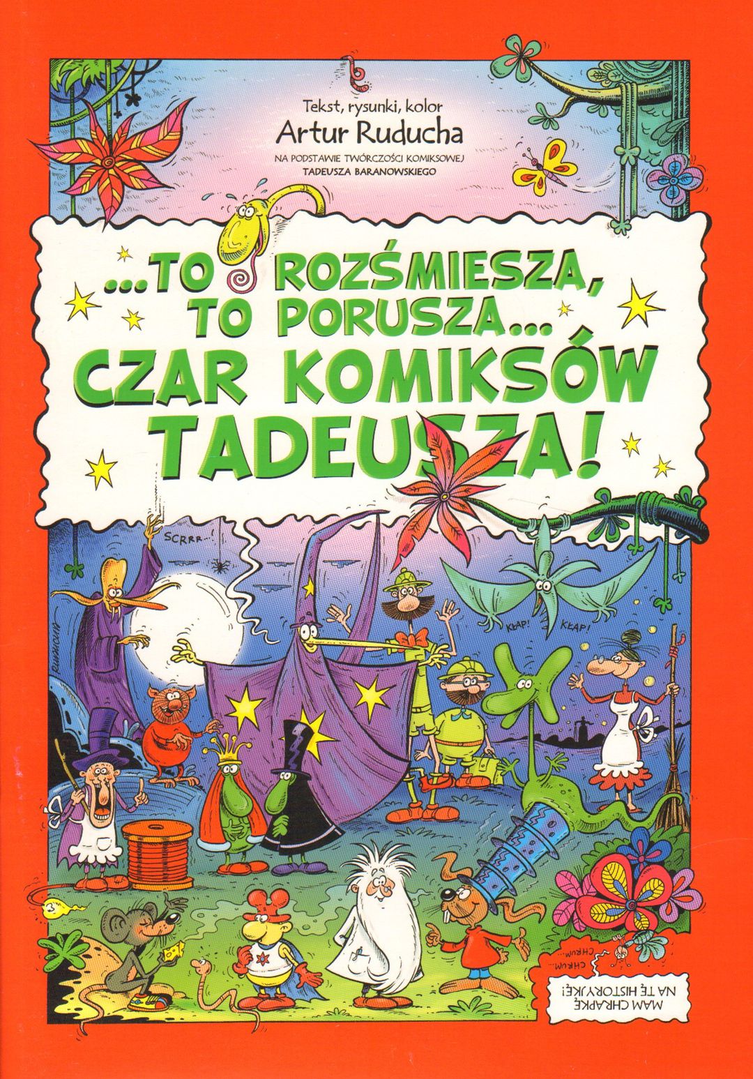 Komiksowy hołd, jaki Artur Ruducha złożył twórczości Tadeusza Baranowskiego. Dziesiątki motywów z takich albumów, jak Skąd się bierze woda sodowa, Antresolka profesorka Nerwosolka, Na co dybie w wielorybie czubek nosa Eskimosa, Podróż smokiem Diplodokiem, Porady Praktycznego Pana, Tffffuj! Do bani z takim komiksem! oraz wielu innych zostały zebrane i złożone od nowa w niesamowity komiksowy kolaż.