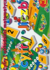 Cyfry i układanki matematyczne (gra planszowa). - Wrocław : Roxana, 2012. - 1 pudełko (64 cyfry, 8 plansz, 1 plansza "Lot motylków", 1 kostka do gry, 3 pionki) : karton, kolor ; 30x19x4 cm.